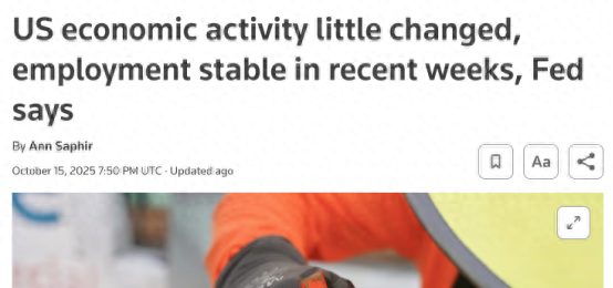 最新褐皮书记录了截至10月6日美联储12家地区银行收集的商业和社区反馈。值得注意的是,这份报告发布当日,原定由劳工统计局公布的关键通胀数据因政府停摆而推迟至10月24日发布。